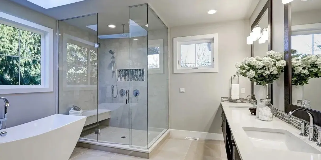 - Frameless shower glass. Sleek, contemporary glass panels with minimal hardware that create seamless, open bathroom aesthetics while maximizing light flow and making spaces appear larger, perfect for clean, uncluttered designs.